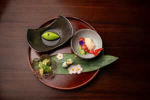 Schon immer ein toller Einstieg in einen Abend bei uns waren unsere hausgemachten Aperitife. Wir mögen besonders Yuzu-Prosecco und Apollon Spritz – das ist Prosecco mit japanischem Yuzu-Sake-Likör von der Brauerei Fukuju in Kobe oder Prosecco mit Amabuki Appollon Sake, also zwei ganz hochwertigen japanischen Sake-Produkten, die besser sind und besser zu Japan passen als jeder Aperol Spritz, den manchen Kunden immer noch reflexartig versuchen, bei uns zu bestellen.