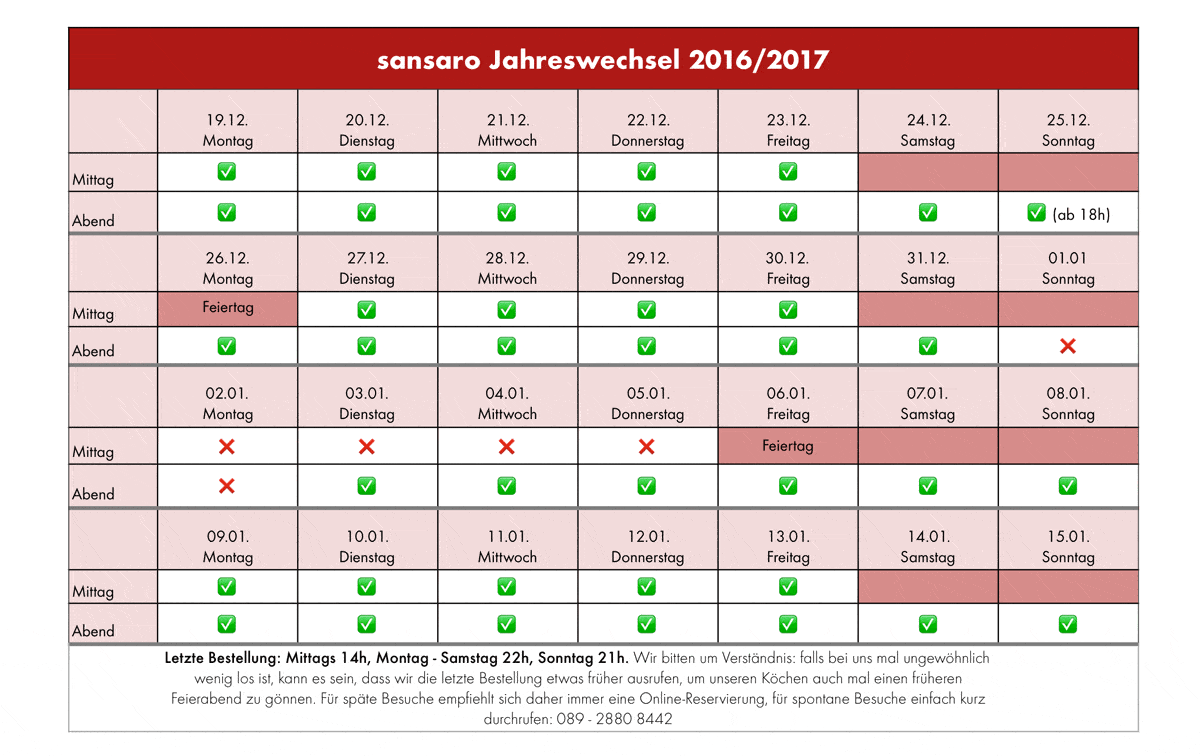 Weihnachten 2016 immer geöffnet | SUSHIYA sansaro