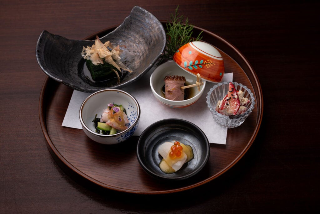 陸と海の調和を象徴する、共通の前奏曲としての季節のテイスティング・プラッター。.